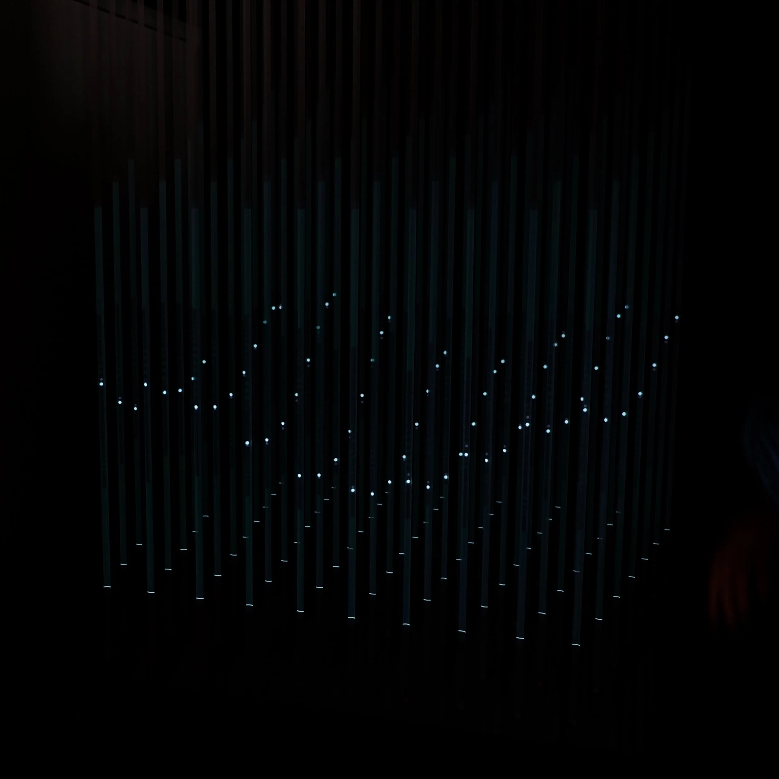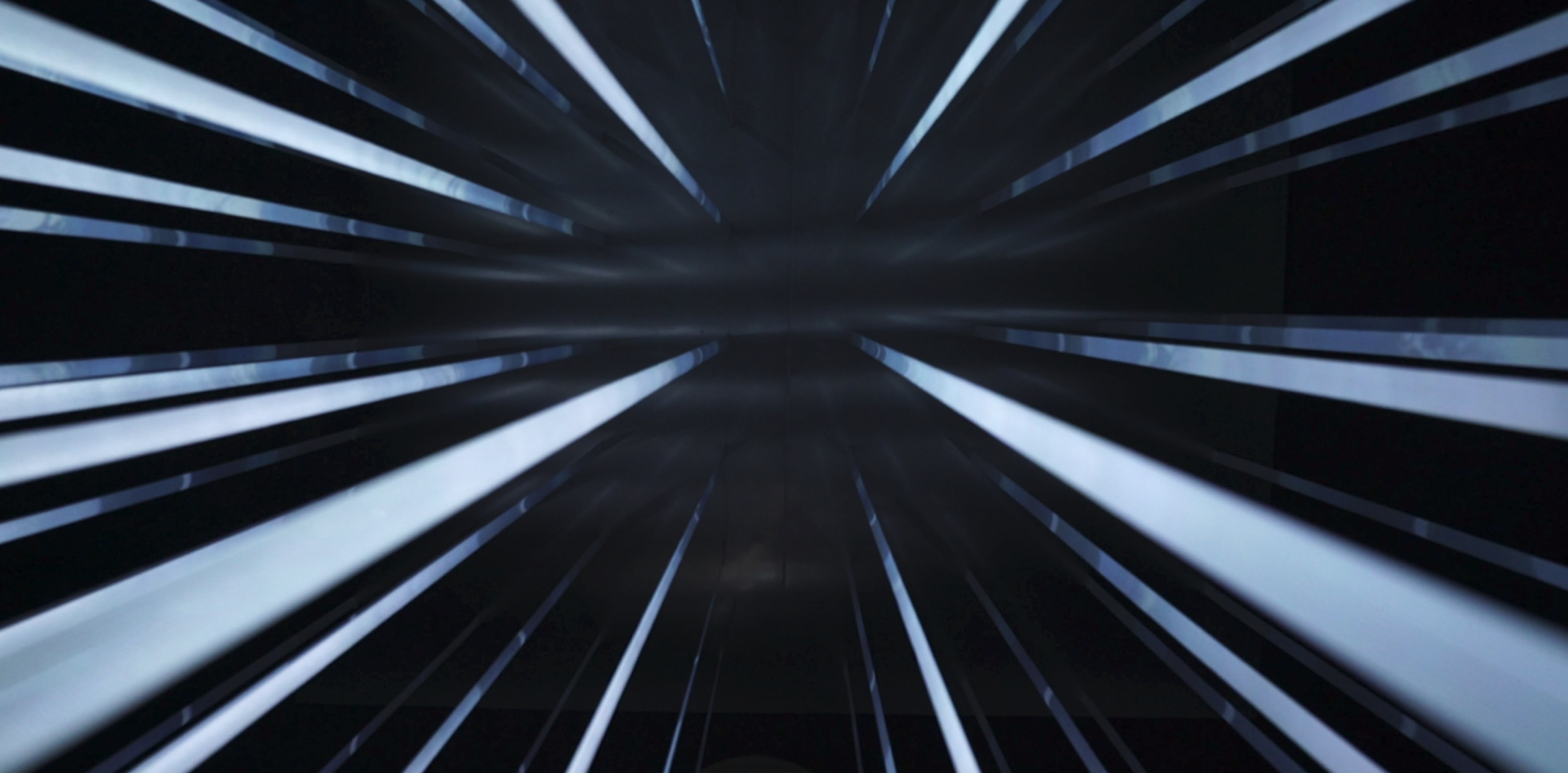 VOXEL is an array of light-catching semi-transparent fabric that explores the sense of physicality that projected light can induce. The spatial presence of the fabric screens with the projection of varying bands of color fills the visual field of the observer. This perception of size with the projection of objects moving in familiar patters connote objects of mass and tangibility. The taut fabric strips introduce a contradiction through the unforgivably sharp, distinct bands of pure color displayed on a malleable, soft fabric, allowing people to walk through the field of light.